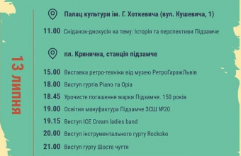 Про це повідомили в п’ятницю, 12 липня, в прес-службі Львівської міськради, де також розповіли: «Святкування розпочнеться із дискусії на тему «Історія та перспективи Підзамче», до якої запрошуємо мешканців дільниці, журналістів та усіх зацікавлених у розвитку цієї дільниці Львова. Місце дискусії – Палац культури імені Гната Хоткевича на вулиці Кушевича.