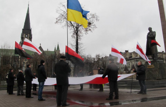 Білоруси запалили свічки біля пам’ятника повстанцям, а також поклали квіти на могилу героїв Небесної Сотні. Пізніше в центрі Львова відбулося святкове віче. Активісти розгорнули десятиметровий біло-червоно-білий прапор.