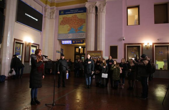 У вівторок, 29 січняє. в центральному холі Львівського залізничного вокзалу відбулося дійство «Станція Крути: зупинись та прислухайся…», присвячений 101-й річниці подвигу Героїв Крут.