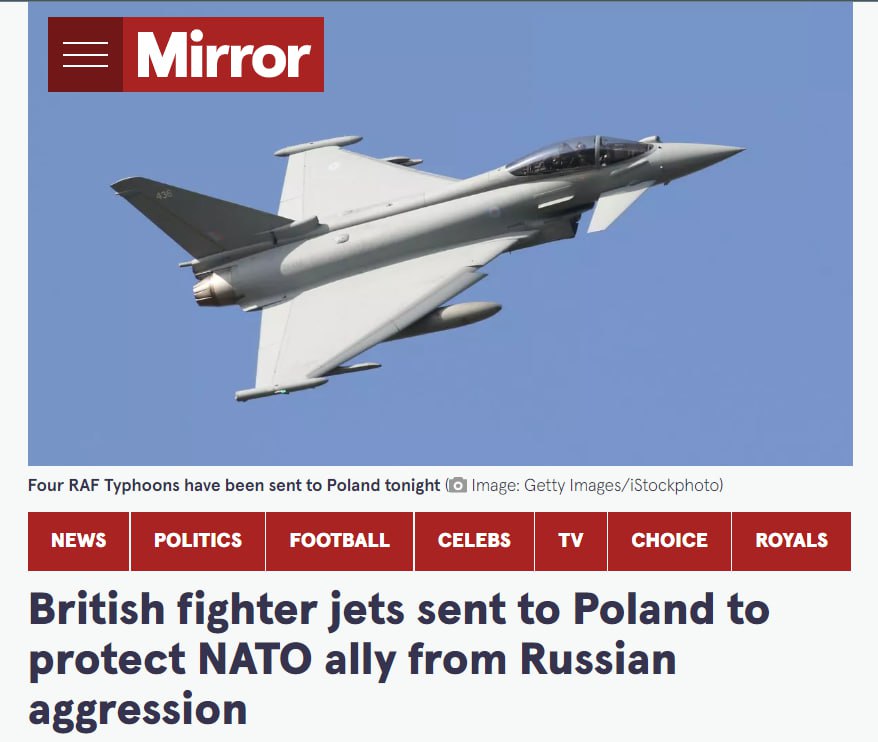 Увечері 1 жовтня винищувачі Королівських ВПС були відправлені до Польщі для захисту східного флангу НАТО від Росії.