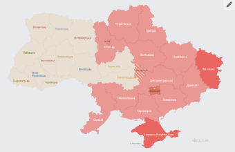 Сигнали про повітряну тривогу почалися о 22.44 і продовжують охоплювати територію України зі сходу на захід.