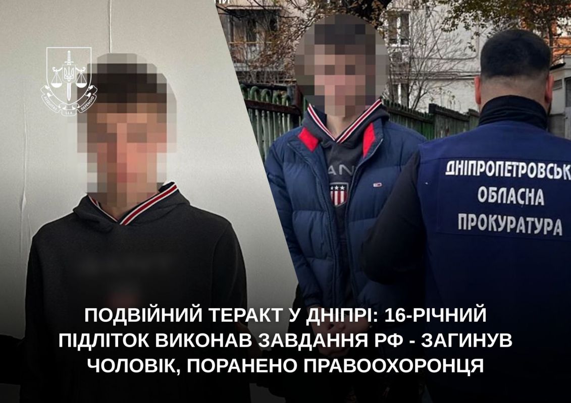 За процесуального керівництва прокурорів Дніпропетровської обласної прокуратури повідомлено про підозру 16-річного хлопця, який вчинив подвійний теракт у Дніпрі, що призвів до загибелі людини. Про це інформує офіс Генпрокурора, пише DailyLviv.com.