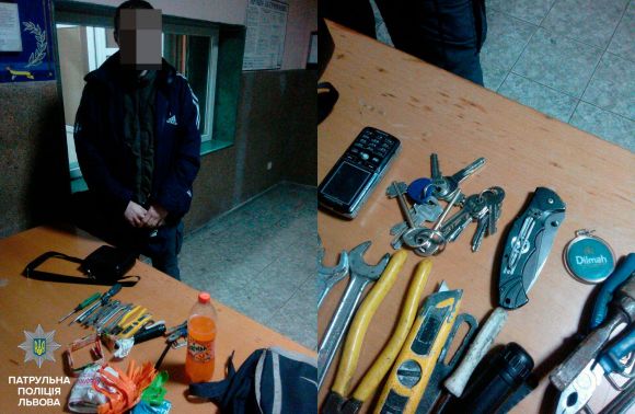 А оскільки патрульні знайшли у нього ключі та сумку з різноманітними інструментами, зв‘язкою ключів і ножем, то запросили його до Франківського відділу поліції, де з’ясували, що цей 30-тирічний чоловік – уже був засуджениий за крадіжку, вчинену повторно, й на нього відкриті ще два провадження за крадіжки. Про це повідомили сьогодні, 23 січня, на сторінці управління патрульної поліції Львова в інтернет-мережі «Facebook», де також опублікували фото з місця події.