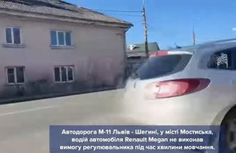 Водій автомобіля Renault Megan вирішив не виконати вимогу регулювальника. Місцевий, 65-річний водій отримав постанову за ч. 2 ст. 122 (Проїзд на заборонний жест регулювальника) КУпАП. Штраф — 510 гривень.