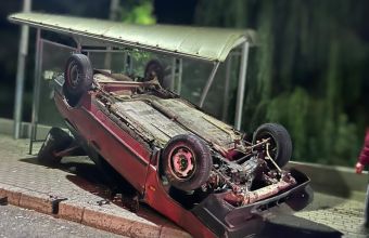 Автомобіль перекинувся на дах на зупинці громадського транспорту. Є травмовані