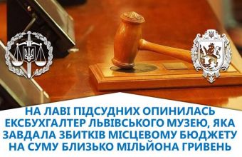Про це повідомили у вівторок, 28 січня, в Головному управлінні поліції у Львівській області, де також розповіли, що слідчі Галицького відділу поліції передали на розгляд суду обвинувальний акт ексбухгалтерці музею, якій, відтак, загрожує від семи до дванадцяти років позбавлення волі з конфіскацією майна. Її викрили слідчі Галицького відділу поліції спільно з працівниками Управління стратегічних розслідувань у Львівській області.