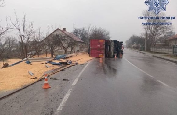 Біля населеного пункту Гостинцеве, що на автодорозі М-11 Львів — Шегині, перекинувся зерновоз. Рух ускладнений. Про це інформує патрульна поліція Львівщини, пише DailyLviv.com.