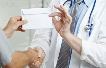 «Працівники Державної служби боротьби з економічною злочинністю ГУМВС України у Львівській області, за процесуального керівництва обласної прокуратури, викрили головного лікаря однієї з районних лікарень у отриманні неправомірної вигоди у сумі одна тисяча доларів США. Ці кошти 53-річний посадовець отримав за сприяння у працевлаштуванні на роботу у цей медичний заклад.