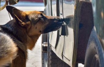 Прикордонний собака допоміг у пункті пропуску «Рава-Руська» на Львівщині знайти 300 пачок сигарет у паливному баку автомобіля «Фольксваген».