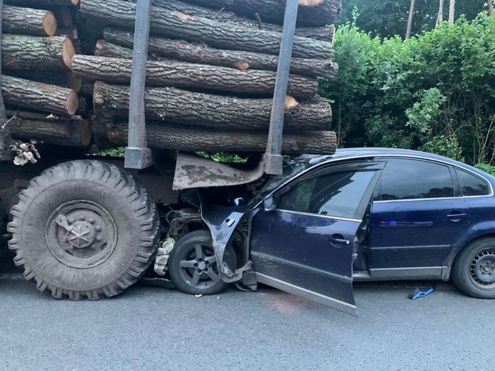 Легковик на Львівшині зіткнувся з лісовозом: госпіталізовано четверо людей