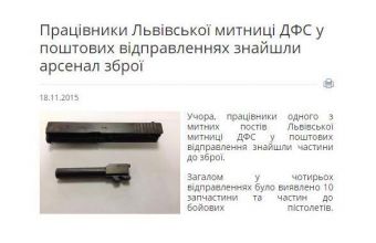«Працівники одного з митних постів Львівської митниці ДФС знайшли вчора, 17 листопада, в поштових відправлення частини до зброї. Загалом у чотирьох відправленнях було виявлено 10 запчастини та частин до бойових пістолетів», – повідомили сьогодні, 18 листопада, в обласному управлінні Державної фіскальної служби України, де також поінформували: