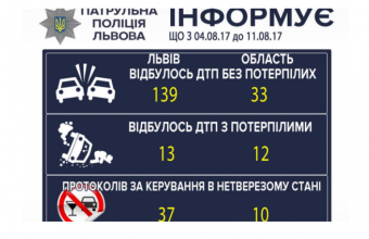 Працівники управління патрульної поліції у Львові оштрафували з 4 до 11 серпня 37 нетверезих водіїв.