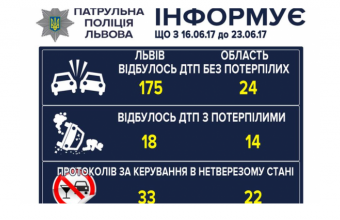 Працівники управління патрульної поліції у Львові оштрафували зі 16 до 23 червня 33 нетверезих водіїв.