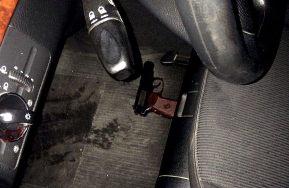 При затриманому не було зброї. Потерпілий показав авто «Mercedes», на якому приїхав невідомий. При поверхневому огляді автомобіля виявили предмет, схожий на зброю, який лежав на килимку. А також оглянувши місце події, патрульні знайшли магазин з набоями, який лежав за кілька метрів на клумбі. Особу поплічника встановили. Справу передали слідчим».