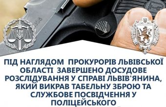 Правоохоронці завершили досудове розслідування у справі львів'янина, який викрав табельну зброю та службове посвідчення в райвідділі поліції.