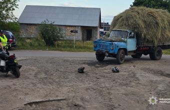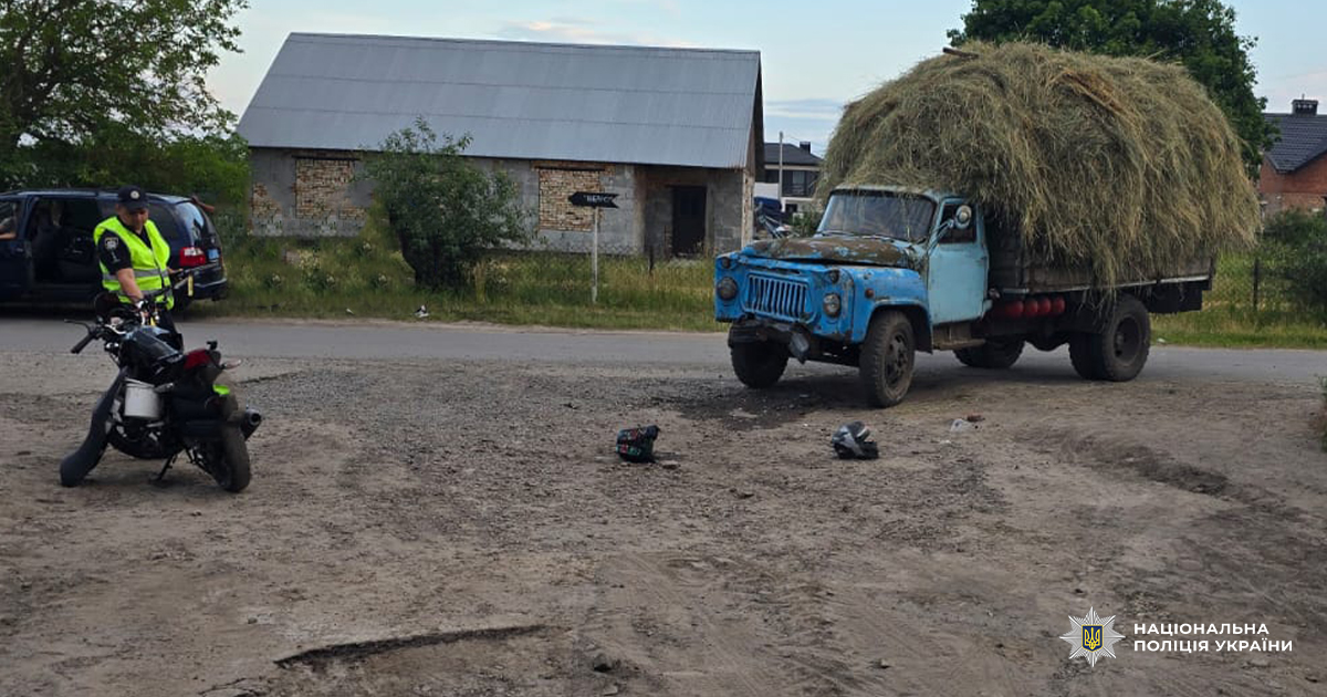 На Львівщині 15-річний мотоцикліст зіткнувся з вантажівкою, яка везла сіно