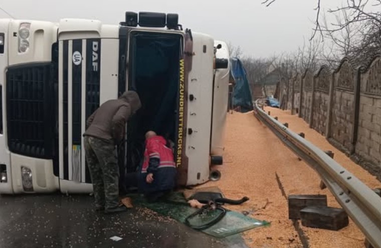 На Львівщині госпіталізували водія зерновоза, який перекинувся на повороті