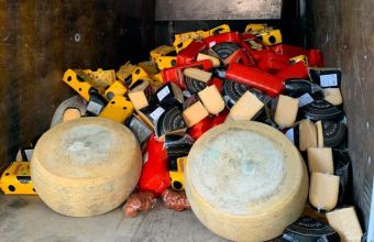 Правоохоронці дістали з автомобіля понад 600 кг сиру та майже 900 кг м'ясних продуктів. «Нелегальний товар», а також автомобіль правоохоронці вилучили.