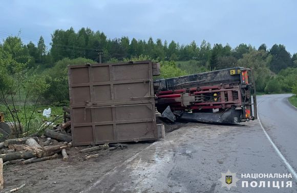 Як попередньо встановили правоохоронці, водій вантажівки Terberg FM-2850T, 46-річний мешканець одного з сіл району, не впорався з керуванням та з’їхав у кювет, де транспортний засіб перекинувся.