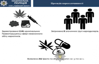 «На території Львівської області зареєстровано 1146 кримінальних правопорушень у сфері незаконного обігу наркотиків, з них пов’язаних зі збутом – 262. Працівниками УПН ліквідовано та припинено діяльність п’ятьох нарколабораторій по виготовленню психотропної речовини «амфетамін». Викрито вісьмох осіб, які організували наркопритони для незаконного вживання, виробництва чи виготовлення наркотичних засобів, психотропних речовин або їх аналогів», – поінформували також в обласному управлінні поліції.