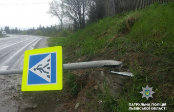 На Львівщині розшукали водія, який збив дорожній знак