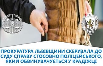 Прокуратура Львівщини скерувала до суду справу стосовно поліціянта, який обвинувачується у крадіжці.