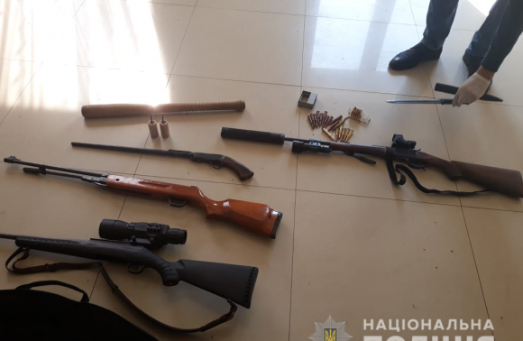 Працівники поліції виявили 14 вересня під час обшуку в помешканні 51-річного мешканця одного зі сіл Старосамбірського району предмети, схожі на карабін системи «Браунінг», пневматичну гвинтівку, нарізну рушницю марки «ІЖ-17» з прицілом та глушником, набої, штик-ніж і два вибухові пакети.