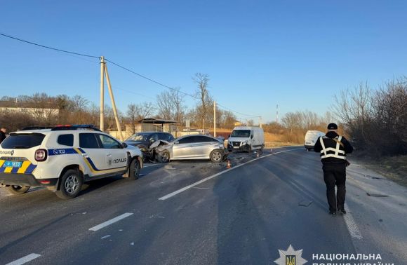 Як попередньо встановили правоохоронці, зіткнулись седан Hyundai Sonata та мікроавтобус Renault Master. Далі, рухаючись зі інерцією, Hyundai виїхав на смугу зустрічного руху, де зіткнувся з кросовером Mazda CX-5 та мікроавтобусом Nissan NV400.