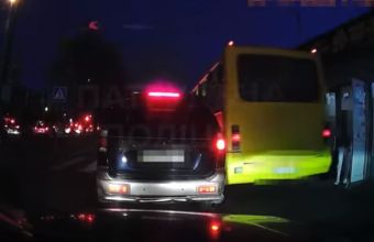 На Сихові водій маршрутки вирішив об‘їхати затор тротуаром (відео)