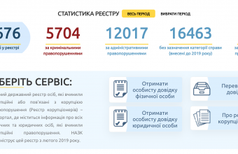 Відтепер можна дізнатися кількість корупціонерів у кожній області та перевірити справжність довідок за QR-кодом. Всього у реєстрі 35 676 осіб. З них 5704 - за кримінальними порушеннями.