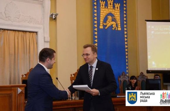 Начальник Головного територіального управління юстиції у Львівській області Ярослав Жукровський передав міському голові Львова Андрію Садовому зареєстрований в управлінні юстиції статут територіальної громади Львова.