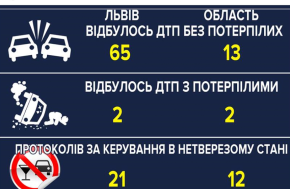 А загалом за дві доби – від 9:00 ранку 10 лютого до 9:00 12 лютого – патрульні оформили 21 протокол на водіїв за керування у нетверезому стані у Львові та 12 протоколів на дорогах державного значення. Про це повідомили сьогодні, 12 лютого, на сторінці управління патрульної поліції Львова в інтернет-мережі «Facebook».