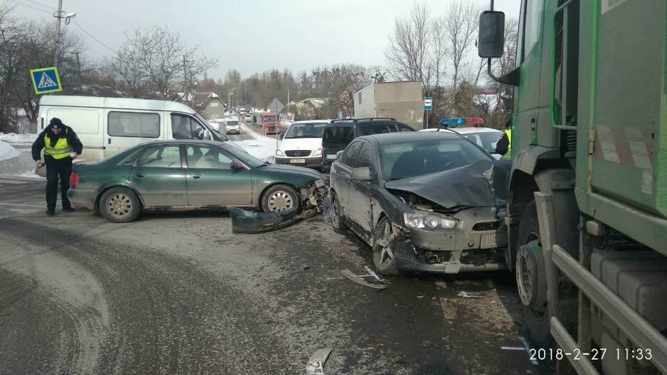 В управлінні патрульної поліції Львівської області розповіли у вівторок: «Сьогодні, патрульні 4-го батальйону під час патрулювання на вулиці Кривчицькій виявили ДТП за участю трьох автомобілів. Водій транспортного засобу «Audi» не виконав вимогу дорожнього знаку «Дати дорогу» та здійснив зіткнення з автомобілем «Mitsubishi», який рухався головною дорогою. Внаслідок зіткнення «Mitsubishi» відкинуло на зустрічну смугу, де відбулося ще одне зіткнення з автомобілем «Iveco».