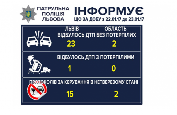 Про це повідомили сьогодні, 23 січня, на сторінці управління патрульної поліції Львова в інтернет-мережі «Facebook», де також опублікували фото з місця події.