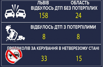 Про це повідомили сьогодні, 18 травня, на сторінці управління патрульної поліції Львівської області у Львівській області в інтернет-мережі «Facebook», де також розповіли, що, зокрема, у Львові його працівники зареєстрували з 11 до 18 травня 158 ДТП. Патрульні також зупинили 48 п’яних водіїв. 33 із них – у Львові.