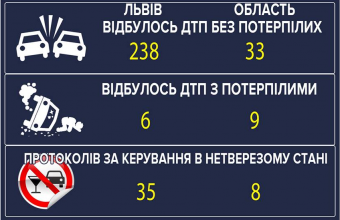 В управлінні патрульної поліції Львова повідомили в п’ятницю, що його працівники зареєстрували зі 16 до 23 березня 271 ДТП, 238 із яких тапилися у Львові. Зокрема, патрульні зупинили 9-16 березня на Львівщині 43 п’яних водіїв. 35 із них – у Львові.