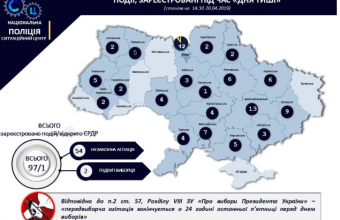 Речник Національної поліції Ярослав Тракало повідомив в суботу, 20 квітня, на своїй сторінці в інтернет-мережі «Facebook»: «У «день тиші» станом на тепер до поліції надійшло 97 заяв та повідомлень, пов’язаних з виборчим процесом. Найбільше заяв отримала поліція у Дніпропетровській (13), Донецькій (9), Миколаївській (сім), Полтавській та Харківській (по шість) областях, а також у Києві (12). Здебільшого йдеться про факти, пов’язані з незаконною агітацією (54) та підкупом виборців (2)».