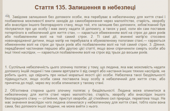 Поліція відкрила за цим фактом відкрито кримінальне провадження за частиною 2 статті 135 (залишення в небезпеці) Кримінального кодексу України, яка передбачає волі на строк до трьох років або позбавлення волі на той самий строк. Про це повідомили сьогодні, 1 грудня, в прес-службі Львівського обласного управління поліції.