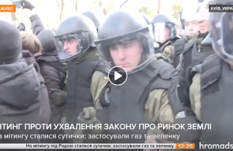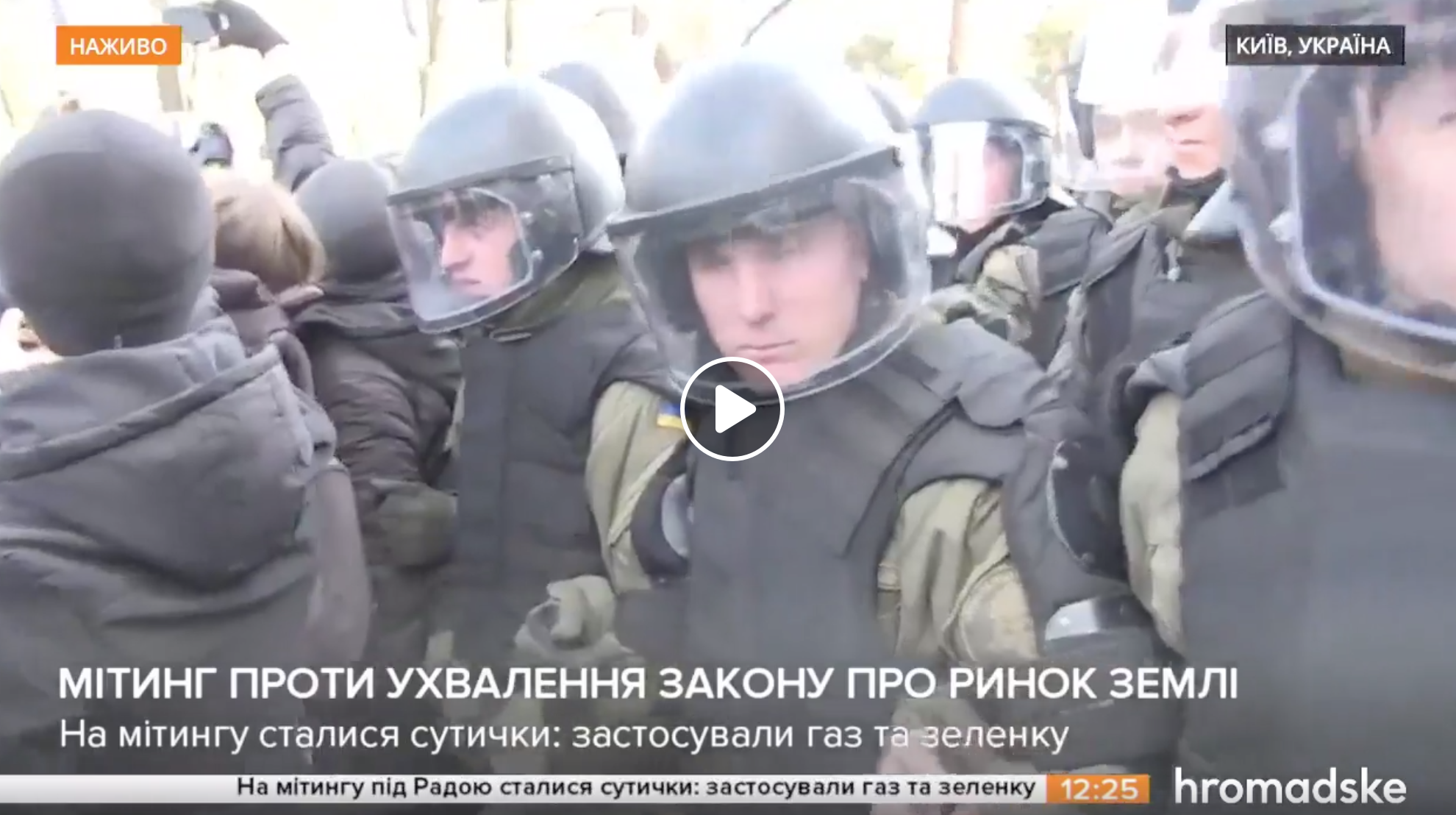 Сутички «Нацкорпусу» зі силовиками біля Ради через акцію проти ринку землі – показуємо наживо.