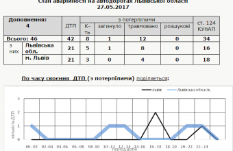 У ньому також розповіли, що вчора на Львівщині загинула внаслідок ДТП одна людина й були травмовані 12. Зокрема, у Львові – четверо.
