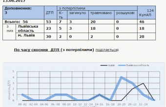 У ньому також повідомили, що у вівторок, 13 червня, на Львівщині загинули внаслідок ДТП троє людей й були травмовані 20. Зокрема, у Львові – двоє.