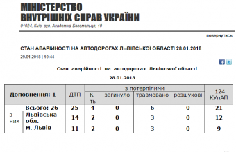 У неділю, 28 січня, на дорогах Львівщини були зафіксовані 25 ДТП.