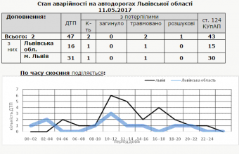 У ньому також поінофрмували, що вчора на Львівщині були травмовані внаслідок ДТП двоє людей. Зокрема, у Львові – одна людина.