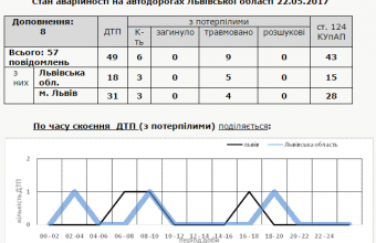 У ньому також поінформували, що вчора на Львівщині були травмованівнаслідок ДТП дев’ятеро людей. Зокрема, у Львові – четверо.