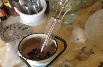 У цій квартирі під час санкціонованого обшуку поліцейські виявили та вилучили кілька медичних шприців, реактиви, інгредієнти та обладнання для виготовлення наркотичної речовини, зокрема скляні колби та хімічний холодильник. Всі вилучені речовини та обладнання відправлені для проведення експертизи.