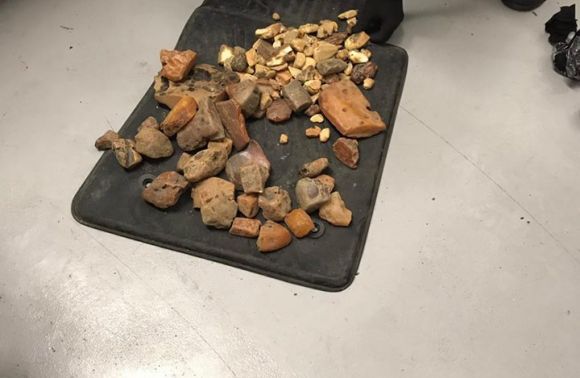 Водій легковика запакував необроблене жовто-коричневе каміння у відсіку для розташування електрообладнання приборів очистки скла.