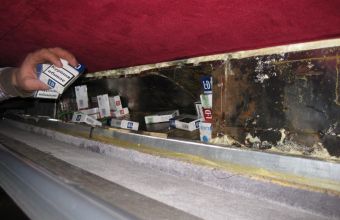 До того ж, на автобус спрацював службовий собака, натренований на пошук сигарет. Під час спільного з митниками огляду в повітрозабірнику та за полицями над сидіннями автобуса прикордонники виявили приховані понад 1500 пачок сигарет.