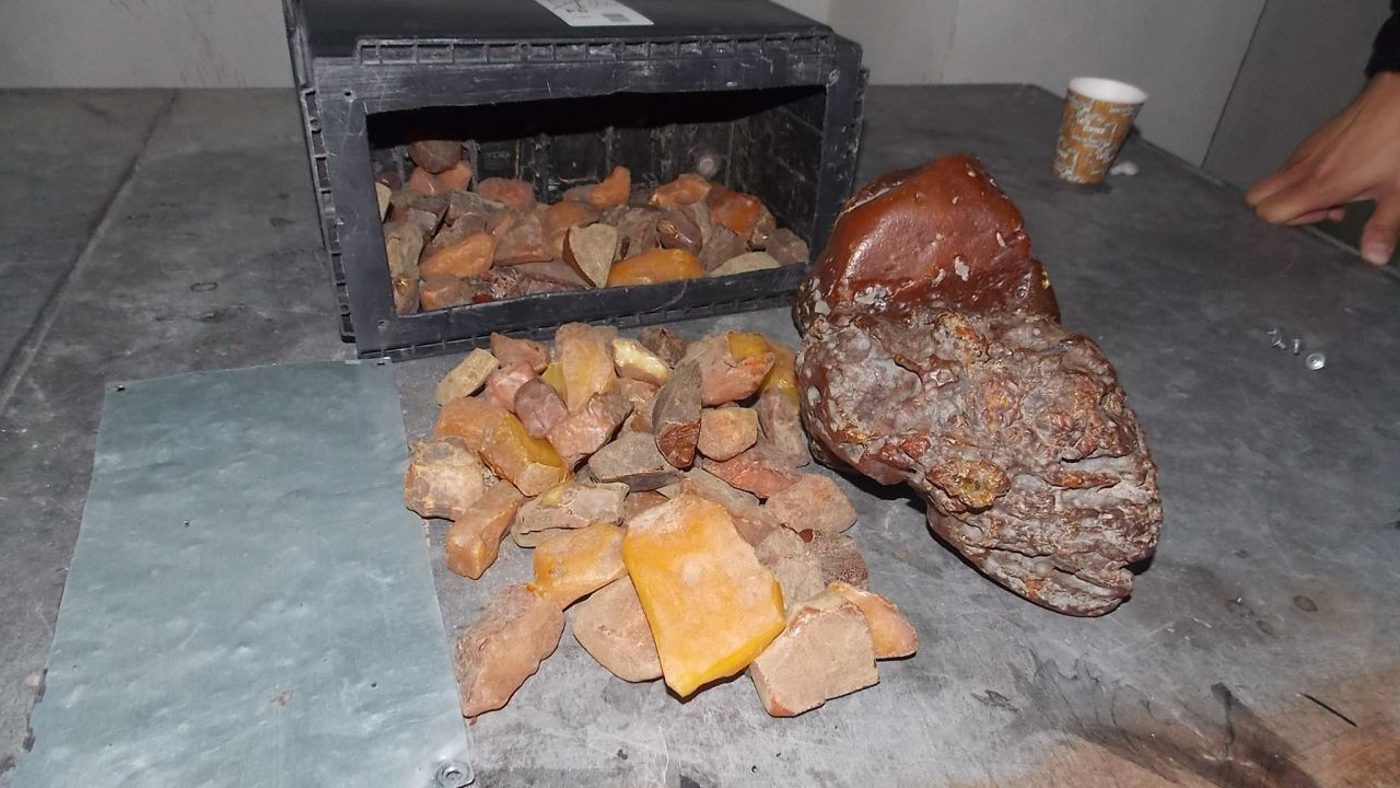 Діставши його прикордонники з’ясували, що саму акумуляторну батарею перероблено, а всередині є вкладення із камінням органогенного походження. Всього в цей акумулятор 39-річний водій мікроавтобусу помістив чотири кілограми та 155 грам каміння бурштину різної фракції, два найбільші екземпляри з якого були більшими за чоловічу долонь. Сонячне каміння та мікроавтобус «Фольксваген» 2013 року випуску вилучено.