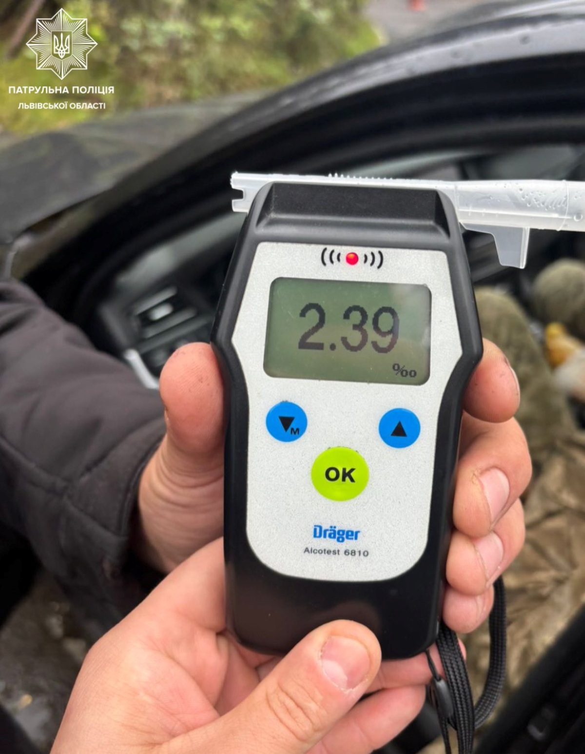 На вулиці Кульпарківській днями патрульні зупинили за порушення ПДР водія автомобіля BMW 528і. Виявилося, що 55-річний керманич позбавлений права керування транспортними засобами. У нього були ознаки алкогольного спʼяніння і прилад Драгер показав результат — 2,39 проміле.