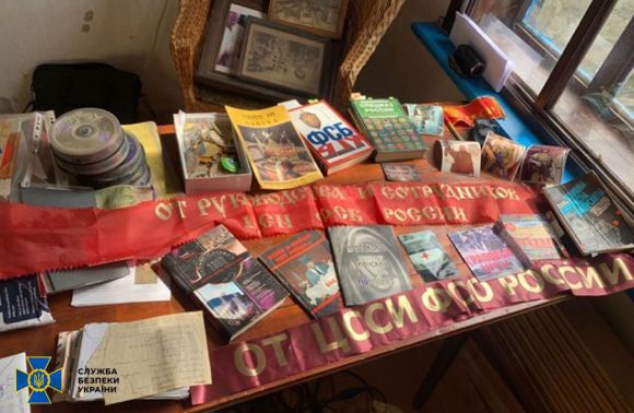 Під час обшуку у помешканні зловмисника виявлено комп’ютерну техніку з доказами злочину та прокремлівську літературу, де російські автори вихваляють спецслужби рф.